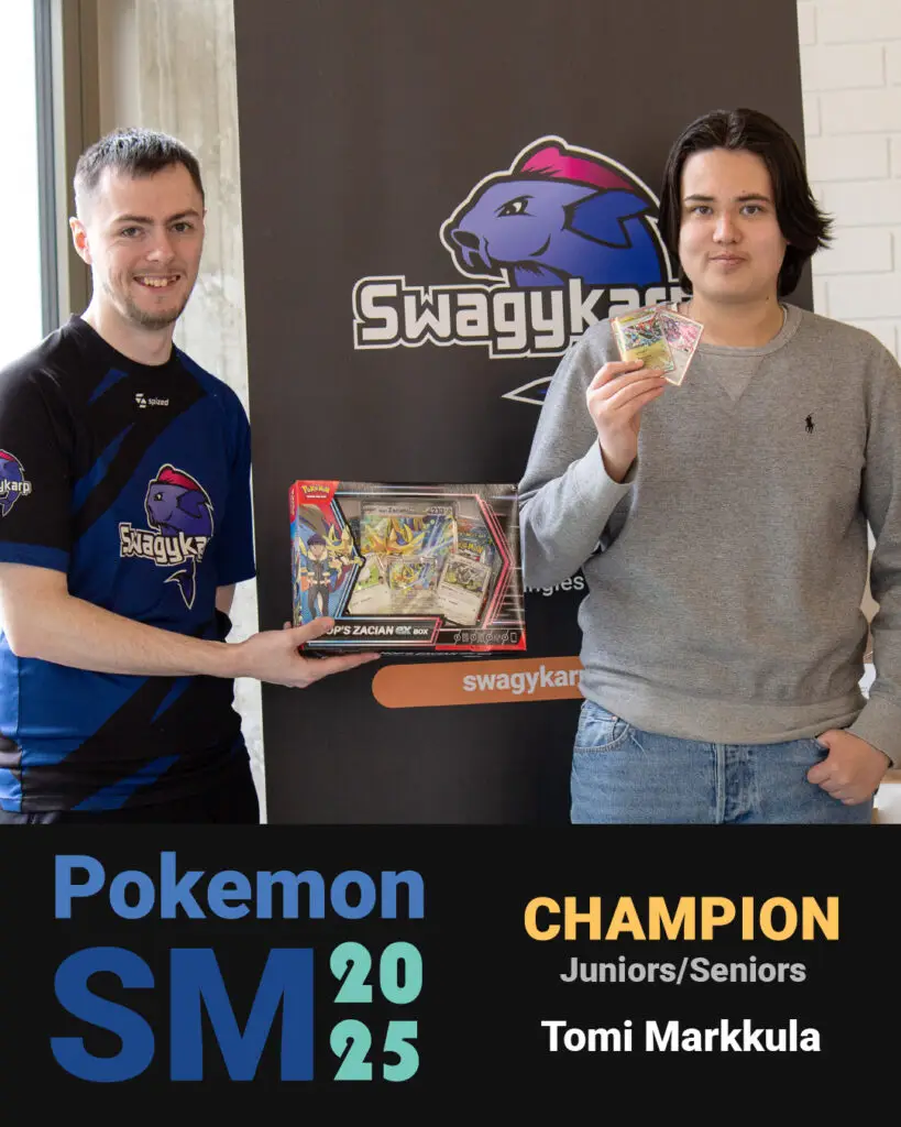 Swagykarp ylpeänä esittää Suomen epävirallista Pokémon TCG:n SM-turnausta, jossa pelaajat pääsevät kilpailemaan kahdessa divisioonassa: Master sekä Junior ja Senior.