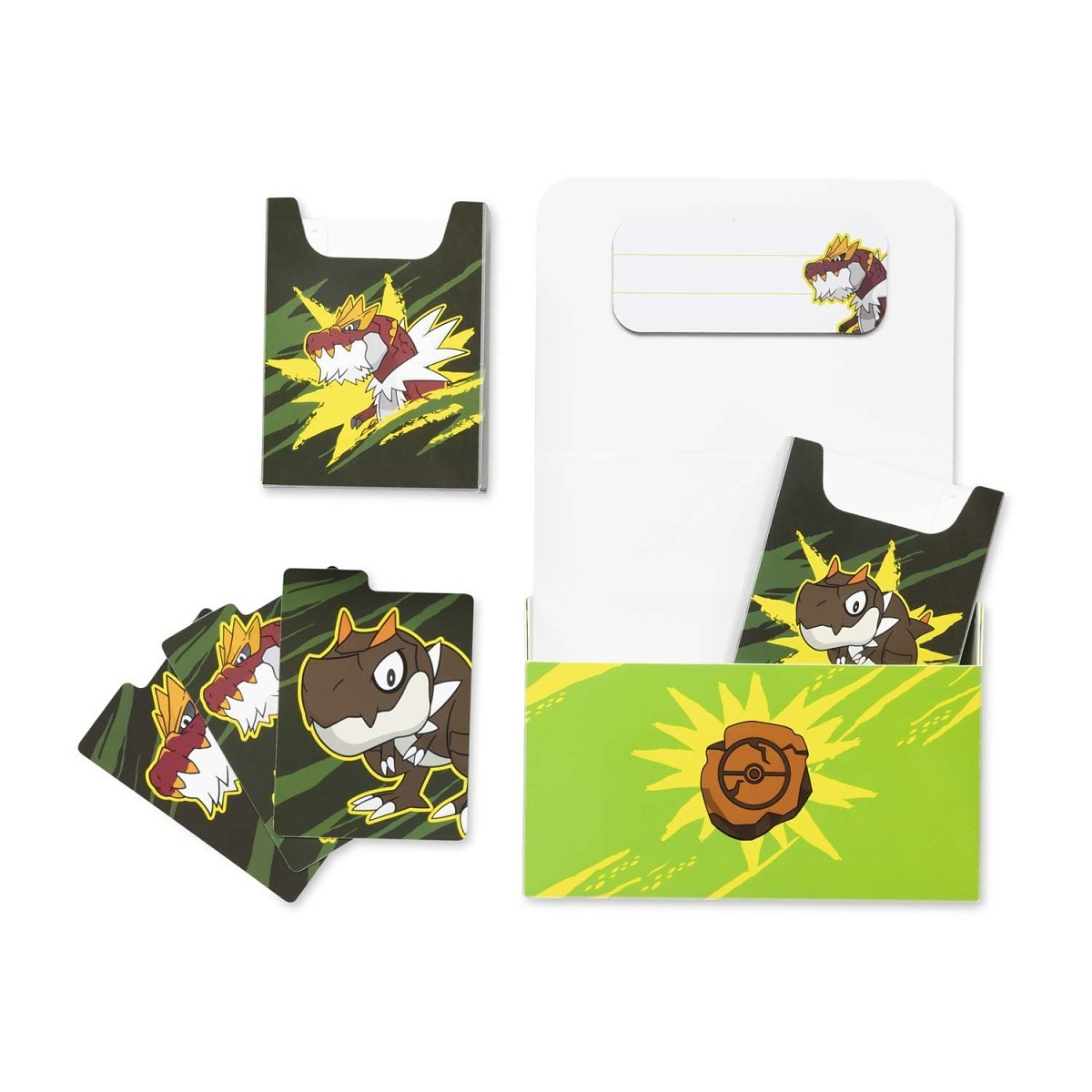 Protect your favorite decks with a little help from Tyrunt and Tyrantrum! Your cards can stay in battle-ready condition with help from two dividers and a magnetic closure that keeps everything in its place—this box is sure to delight players and collectors alike.